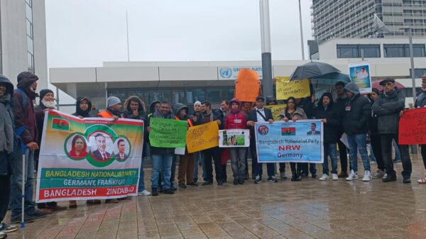 জার্মানির বন শহরে জাতিসংঘ অফিসের সামনে জার্মান বিএনপির আহ্বায়ক কমিটির উদ্যোগে বিক্ষোভ সমাবেশের আয়োজন করা হয়। সমাবেশ শেষে জাতিসংঘের স্থায়ি অফিস প্রধান মিস ইসাবেল কামফের কাছে স্মারকলিপি প্রদান করা