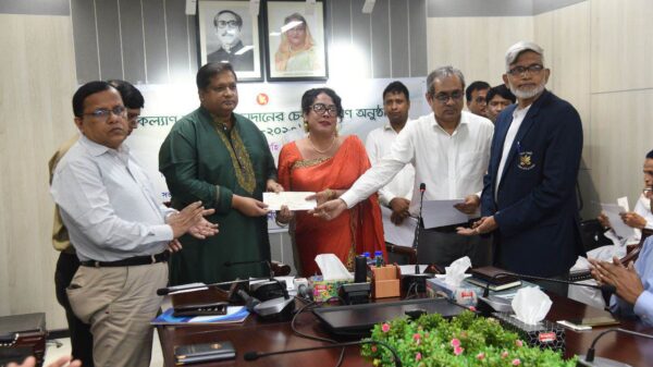 সোমবার দুপুরে যুব ও ক্রীড়া মন্ত্রণালয়ের সম্মেলন কক্ষে মাননীয় প্রধানমন্ত্রী কর্তৃক ৫ জন ক্রীড়াবিদ – ক্রীড়াসংগঠককে চিকিৎসা সহায়তা হিসেবে প্রদত্ত ৯১ লক্ষ টাকার আর্থিক অনুদানের চেক হস্তান্তর করেছেন যুব ও