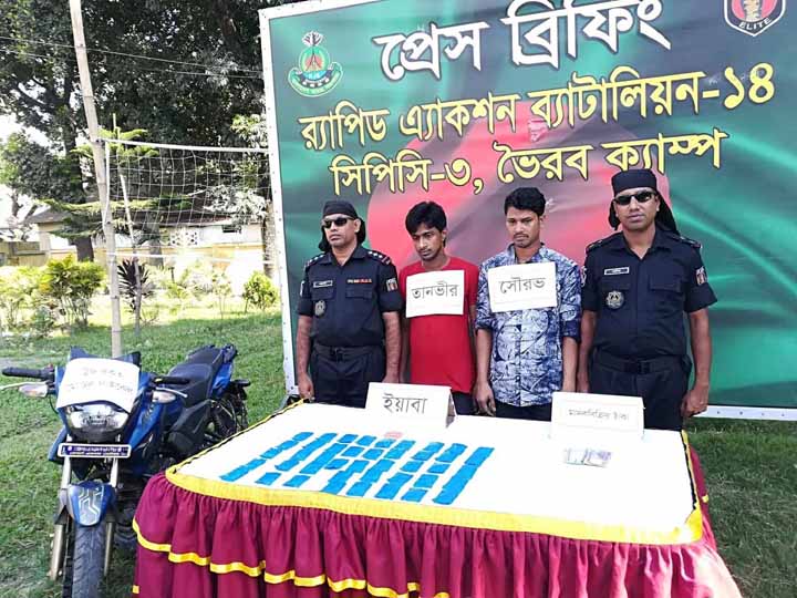 রাজীবুল হাসান, ভৈরব প্রতিনিধি: কিশোরগঞ্জের ভৈরবে মোটরসাইকেলর চাকার টায়ারের ভিতর থেকে সাড়ে ৮ হাজার পিছ ইয়াবাসহ দুই মাদক ব্যবসায়ীকে আটক করেছে র্যাব সদস্যরা। র্যাব সুত্রে জানা যায়, অভিনয় কায়দায় একটি