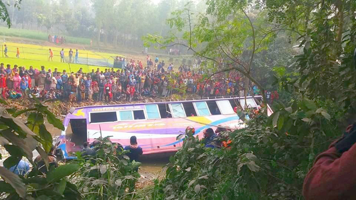 সিরাজগঞ্জ প্রতিনিধি: সিরাজগঞ্জের উল্লাপাড়ায় যাত্রীবাহী বাস নিয়ন্ত্রণ হারিয়ে খাদে পড়ে অন্তত ২০ জন যাত্রী আহত হয়েছেন। শুক্রবার সকাল সাড়ে ১০টার দিকে বগুড়া-পাবনা মহাসড়কে উপজেলার কাঁঠালতলা এলাকায় এ দুর্ঘটনা ঘটে। আহতদের
