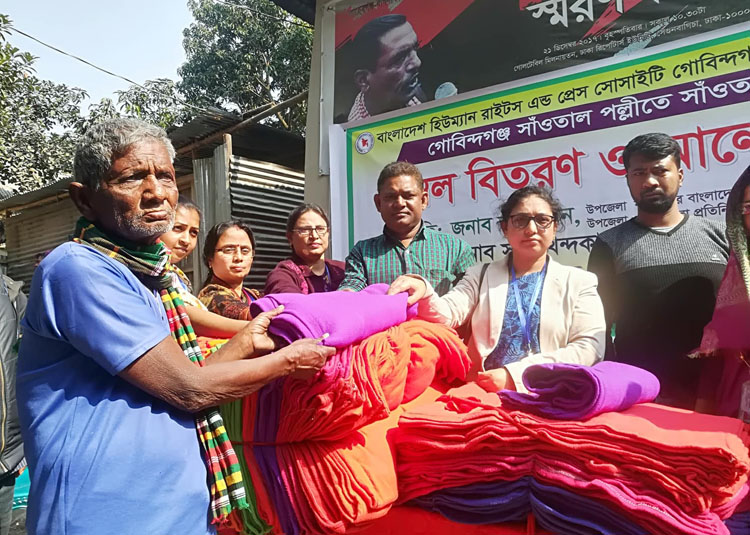 আশরাফুল ইসলাম, গাইবান্ধা প্রতিনিধি: বাংলাদেশ হিউম্যান রাইটস এন্ড প্রেস সোসাইটি গাইবান্ধা জেলার গোবিন্দগঞ্জ কমিটি সাহেবগঞ্জ জয়পুর পাড়ায় সাঁওতালদের মাঝে কম্বল বিতরণও আলোচনা সভা করেছেন। শুক্রবার সকাল ১১ টায় গোবিন্দগঞ্জ সাহেবগঞ্জ