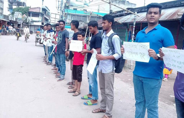 মোঃ নজরুল ইসলাম,কোটচাঁদপুর (ঝিনাইদহ) প্রতিনিধি: ঢাকার কুর্মিটোলায় বাস চাপায় দুই শিক্ষার্থী নিহত হওয়ার ঘটনায় নিরাপদ সড়কের দাবিতে ঝিনাইদহের কোটচাঁদপুরে মানবন্ধন করেছে শিক্ষার্থীরা। শুক্রবার (০৩ আগস্ট) সকালে বৃষ্টি আর ছুটির দিন