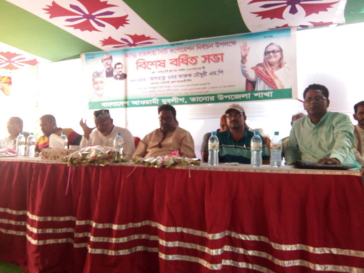 একেএম বাবু রাজশাহী প্রতিনিধি: রাজশাহীতে সিটি কর্পোরেশন নির্বাচন উপলক্ষে তানোর উপজেলা যুবলীগের অায়োজনে বর্ধিত সভা ১৭ জুলাই মঙ্গলবার চাপড়া উচ্চ বিদ্যালয় প্রাংঙ্গনে জোবায়ের হোসেনের পরিচালনায় অনুষ্ঠিত হয়েছে। এতে তানোর উপজেলা