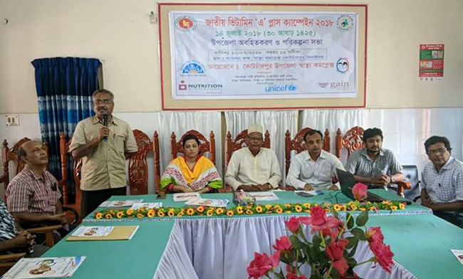 মোঃ নজরুল ইসলাম কোটচাঁদপুর, ঝিনাইদহ: ঝিনাইদহের কোটচাঁদপুরে জাতীয় ভিটামিন এ প্লাস ক্যাম্পেইন ১৪ জুলাই ২০১৮ উপলক্ষে উপজেলা অবহিতকরণ ও পরিকল্পনা সভা অনুষ্ঠিত হয়েছে। মঙ্গলবার (১০ জুলাই) উপজেলা স্বাস্থ্য কমপ্লেক্সের সম্মেলন