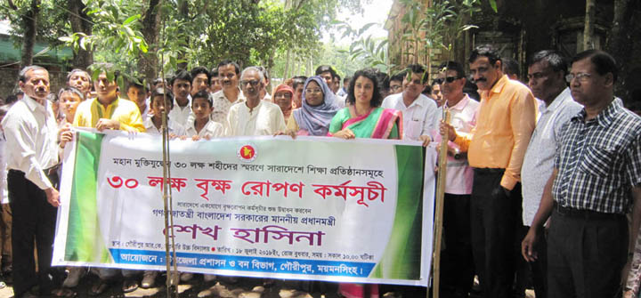 গৌরীপুর (ময়মনসিংহ) প্রতিনিধি: মহান মুক্তিযুদ্ধের ৩০ লক্ষ শহীদের স্মরণে সারাদেশে শিক্ষা প্রতিষ্ঠানে ৩০ লক্ষ বৃক্ষরোপন কর্মসূচির অংশ হিসেবে ময়মনসিংহের গৌরীপুরে সকল শিক্ষা প্রতিষ্ঠানে উক্ত কর্মসূচি পালিত হয়েছে। এ কর্মসূচি সফল