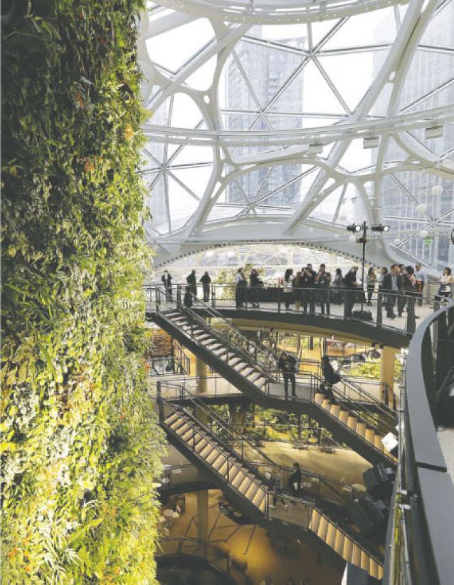 সাত বছরের পরিকল্পনা ও নির্মাণ শেষে ই-কমার্স ওয়েবসাইট আমাজনের খুদে রেইনফরেস্ট ‘দ্য স্ফিয়ারস’ চালু করা হয়েছে গত জানুয়ারির শেষে। গোলাকার ভবনটি মূলত আমাজনের কর্মীদের জন্য কাজের চাপ থেকে ‘পালিয়ে যাওয়ার’