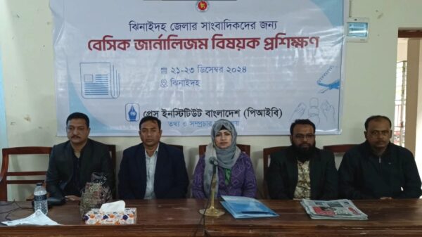 অনুসন্ধানী প্রতিবেদন তৈরিতে আগ্রহ সৃষ্টি, কর্মরত সাংবাদিকদের দক্ষতা আরও বৃদ্ধি ও মান সম্পন্ন প্রতিবেদনের সংখ্যা বৃদ্ধি করার লক্ষ্যে ঝিনাইদহে ৩ দিন ব্যাপী বেসিক জার্নালিজম বিষয়ক প্রশিক্ষণ শুরু হয়েছে। শনিবার সকালে